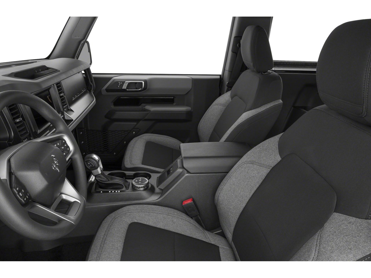 The interior of this Bronco is packed with premium features, including SYNC 4, air conditioning, power windows, and a premium audio system with SiriusXM. The convertible hardtop allows you to enjoy the open-air experience, while the split-folding rear seat provides ample cargo space for all your adventuring needs.