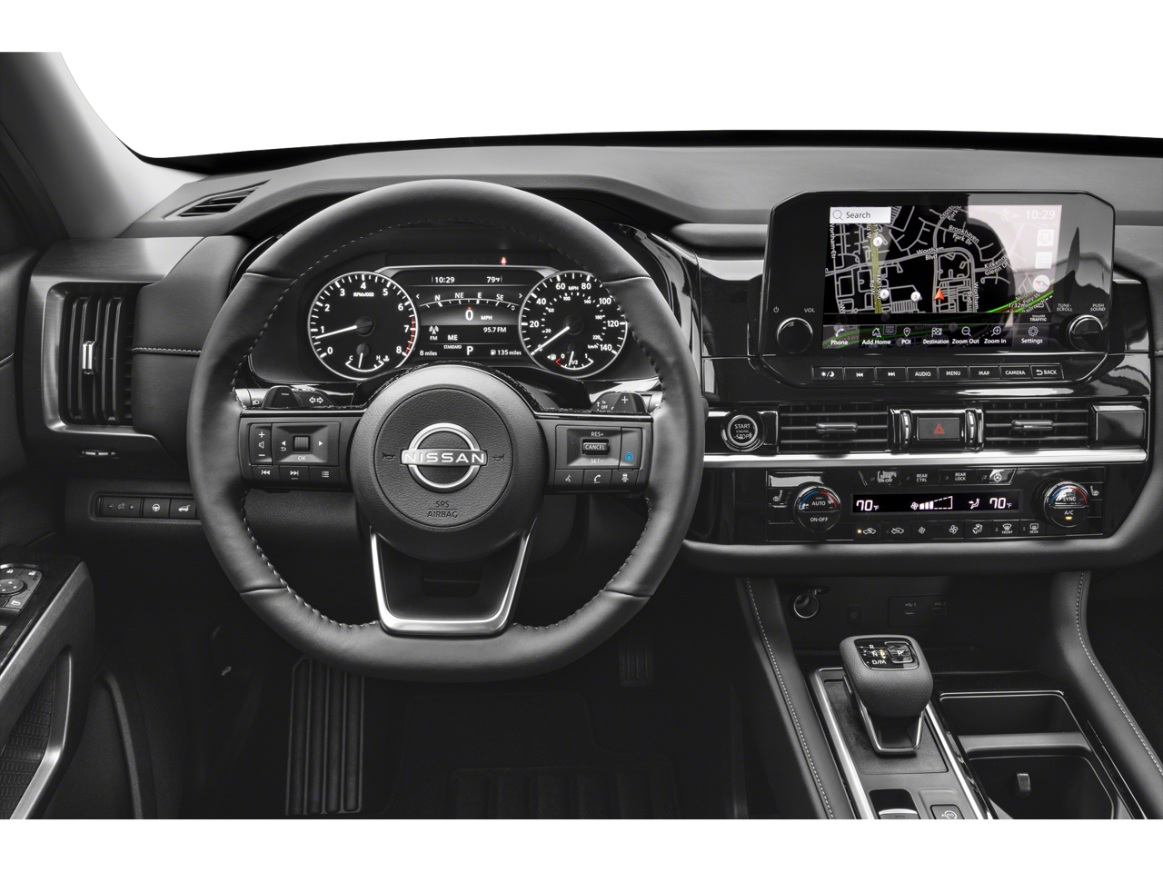 Safety equipped with Nissan Safety Shield 360, including blind spot warning, rear cross traffic alert, lane departure warning, intelligent cruise control, automatic emergency braking, and 360 surround view camera.