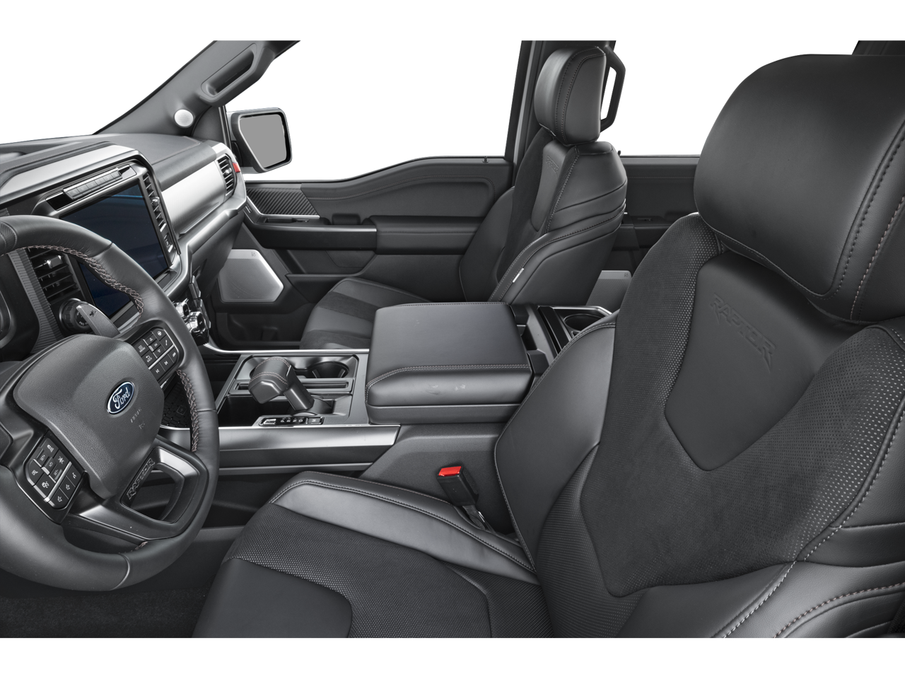 The Raptor's striking exterior is highlighted by bold, rugged styling cues that command attention. Featuring a body-color bumper, power-adjustable and heated side mirrors, and 17-inch cast aluminum wheels, this truck has a presence that's hard to ignore. Automatic headlights, fog lights, and rain-sensing wipers ensure you'll always have excellent visibility, no matter the conditions.